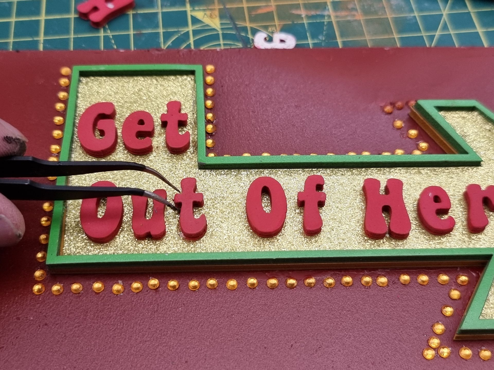 Placing the larger letters and dealing with errors such as not removing the film coating