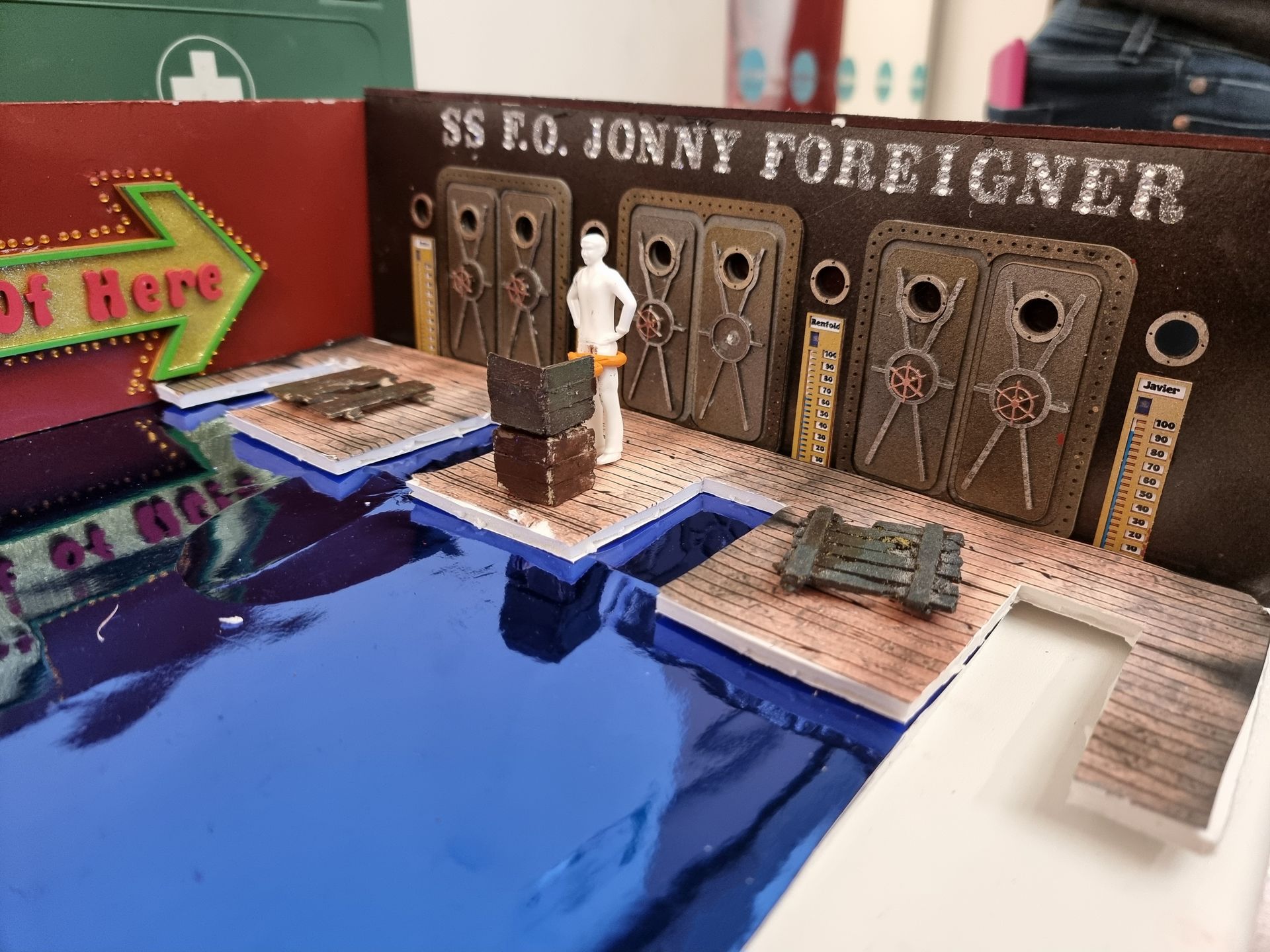 Door frames, painting styles. Noting how the tiny details such as portholes with tiny screw holes, pressure door internal structure and the crank wheels were created.