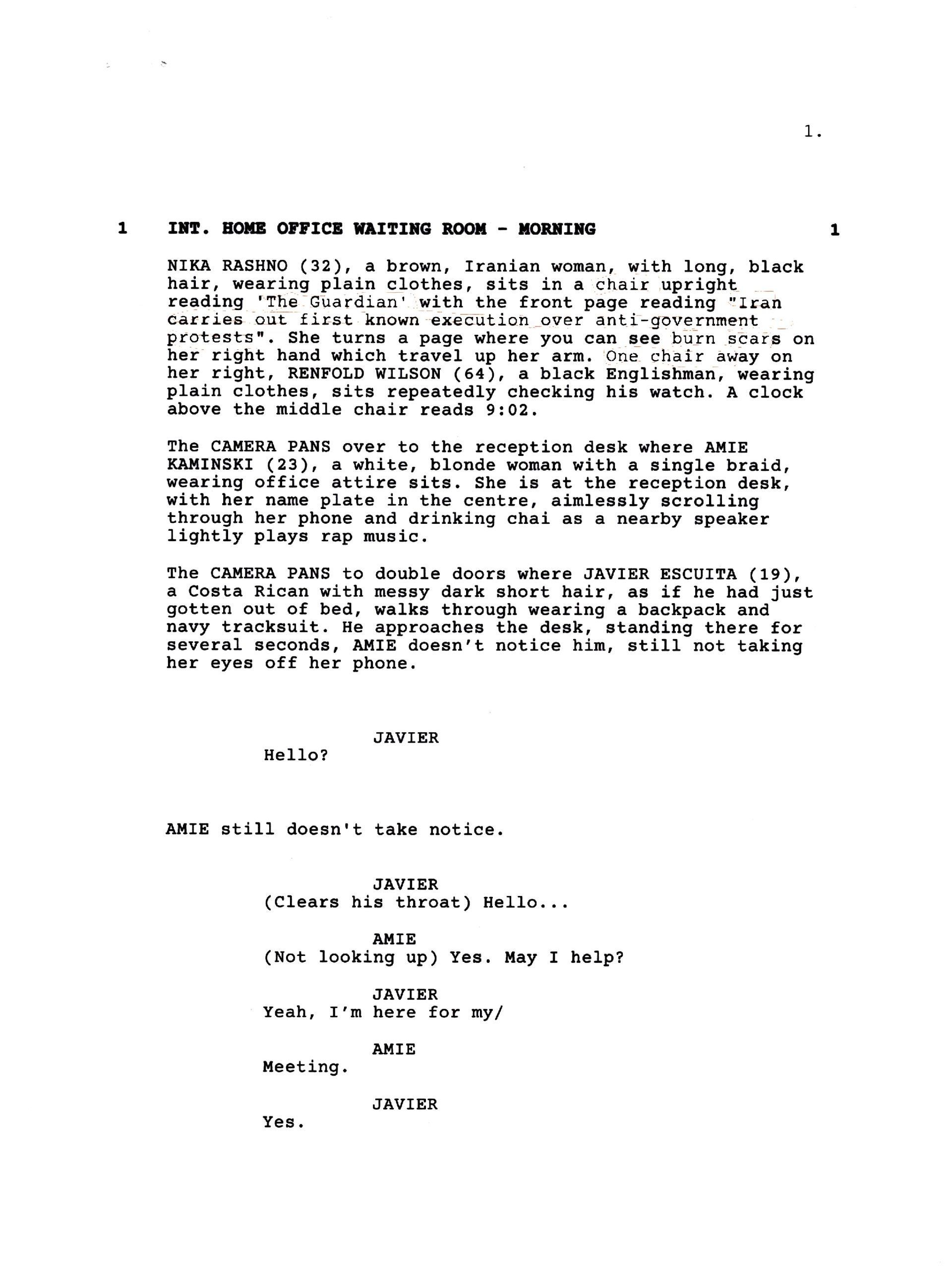 This is the script. The model is for the scond location and scene set in a dream of twisted far right racist, xenophobic rigged game show.