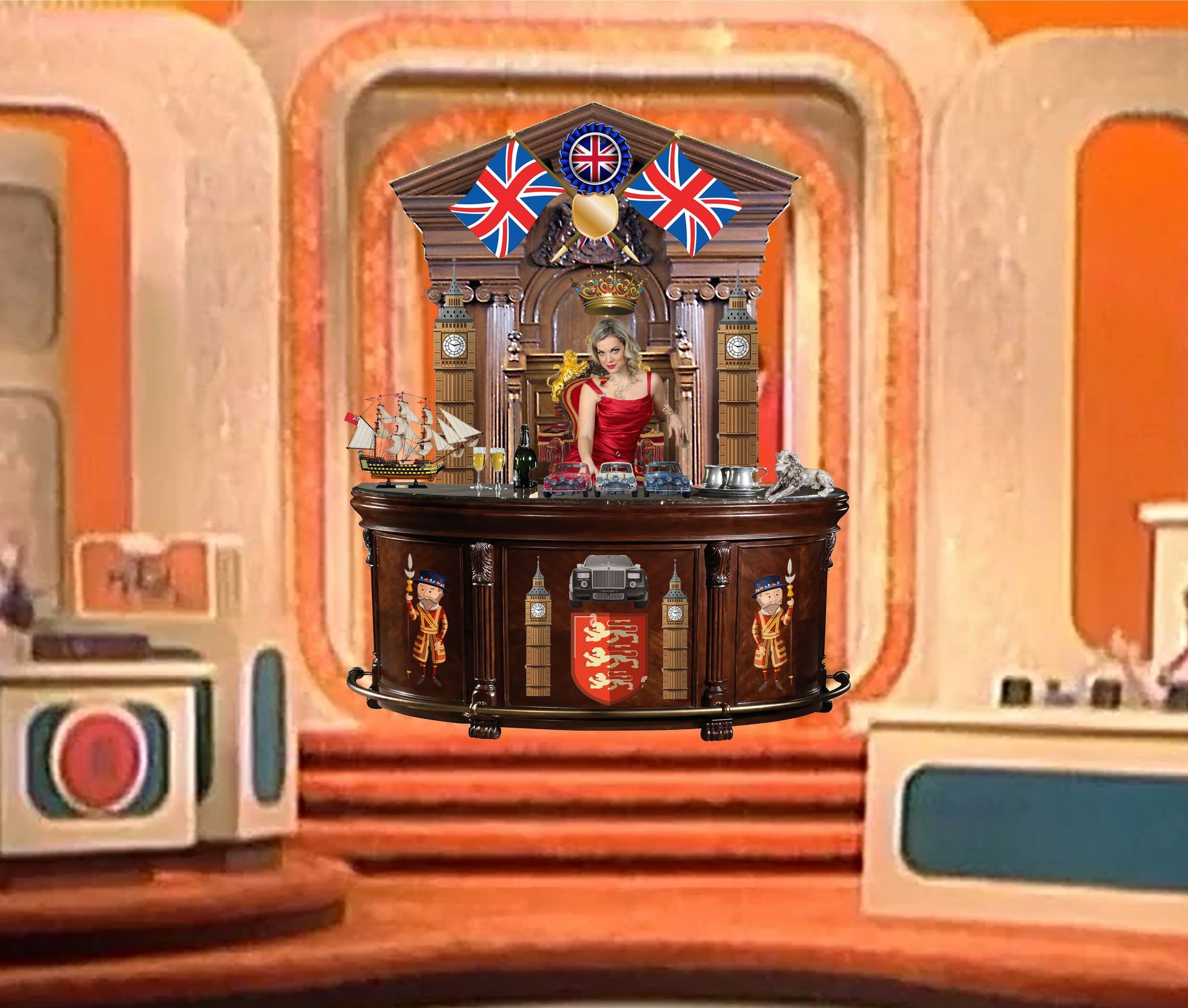 The host would get a British pub like desk podium with rooms for luxuries and refreshments such as cocktails and chocolates as well as sy7mbols of Britishness and memorabilia.