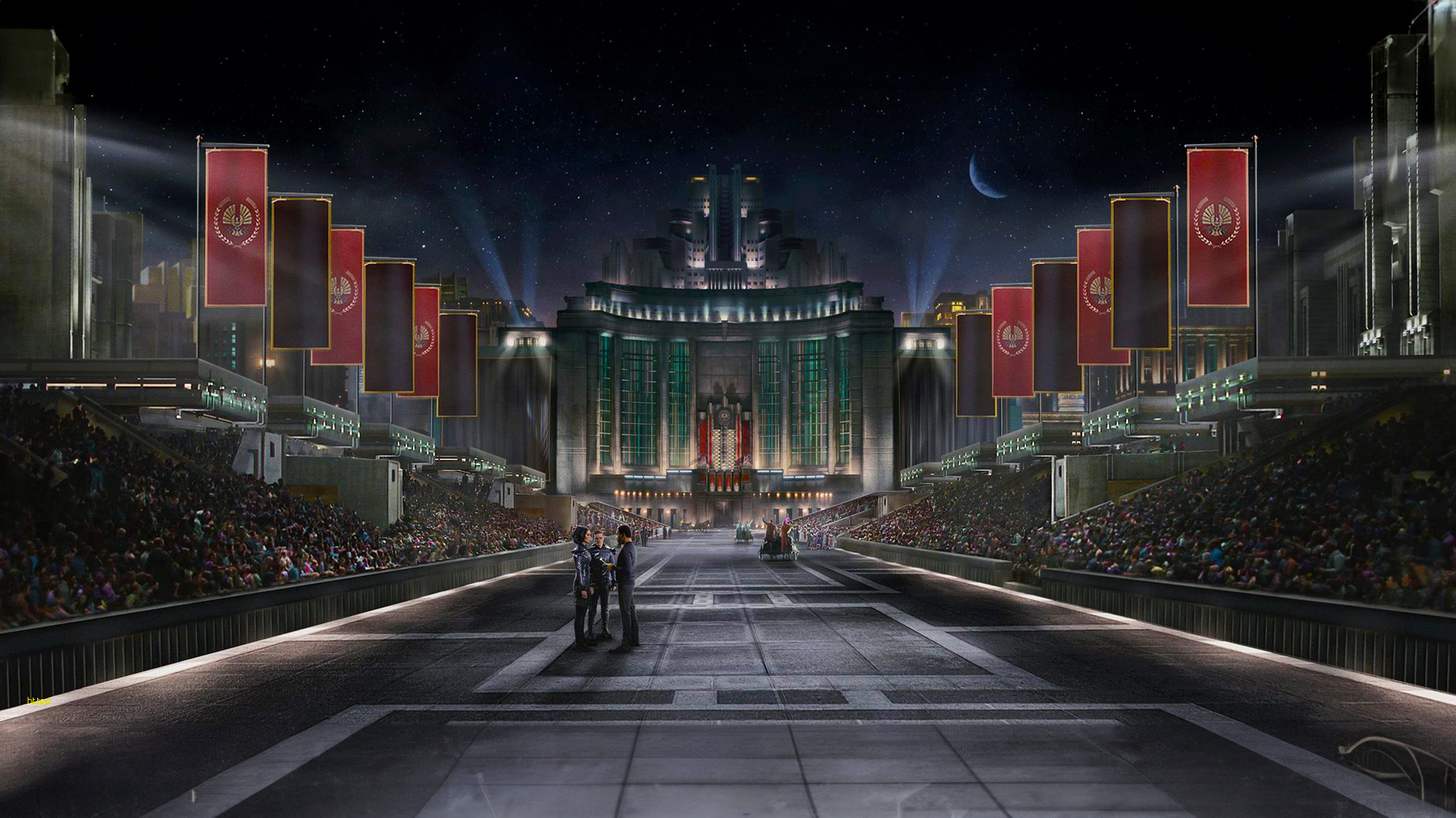 To emphasise power behind the host would be a classical temple like wooded decade. I modelled this on the old bailey to give the feel of a judge’s position and this would be lifted to a height to look down on the contestants.