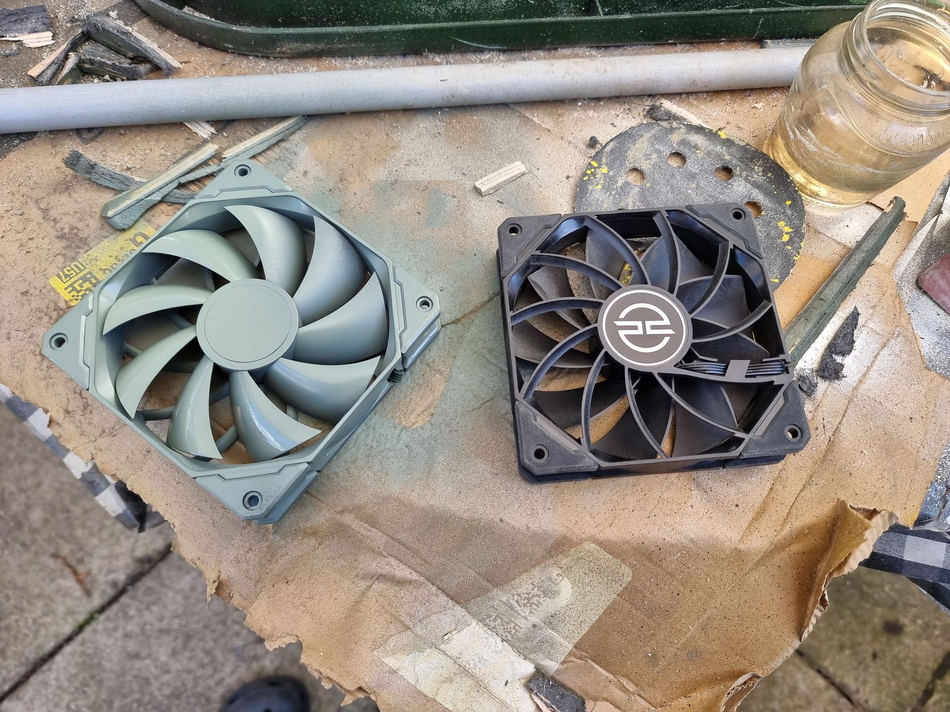I decided to add some components starting with a pair of old fans taken from my broken computer All in One liquid cooler to appear to vent.