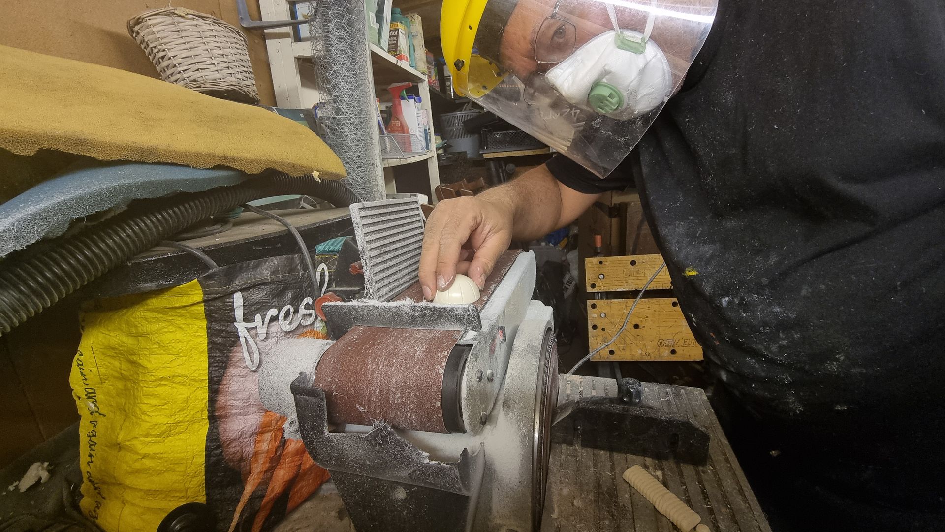To curve the ends, I used the belt sander. Then I heated the foam and pressed this onto smooth surfaces to smooth the surface so it would look more metallic before spray painting.