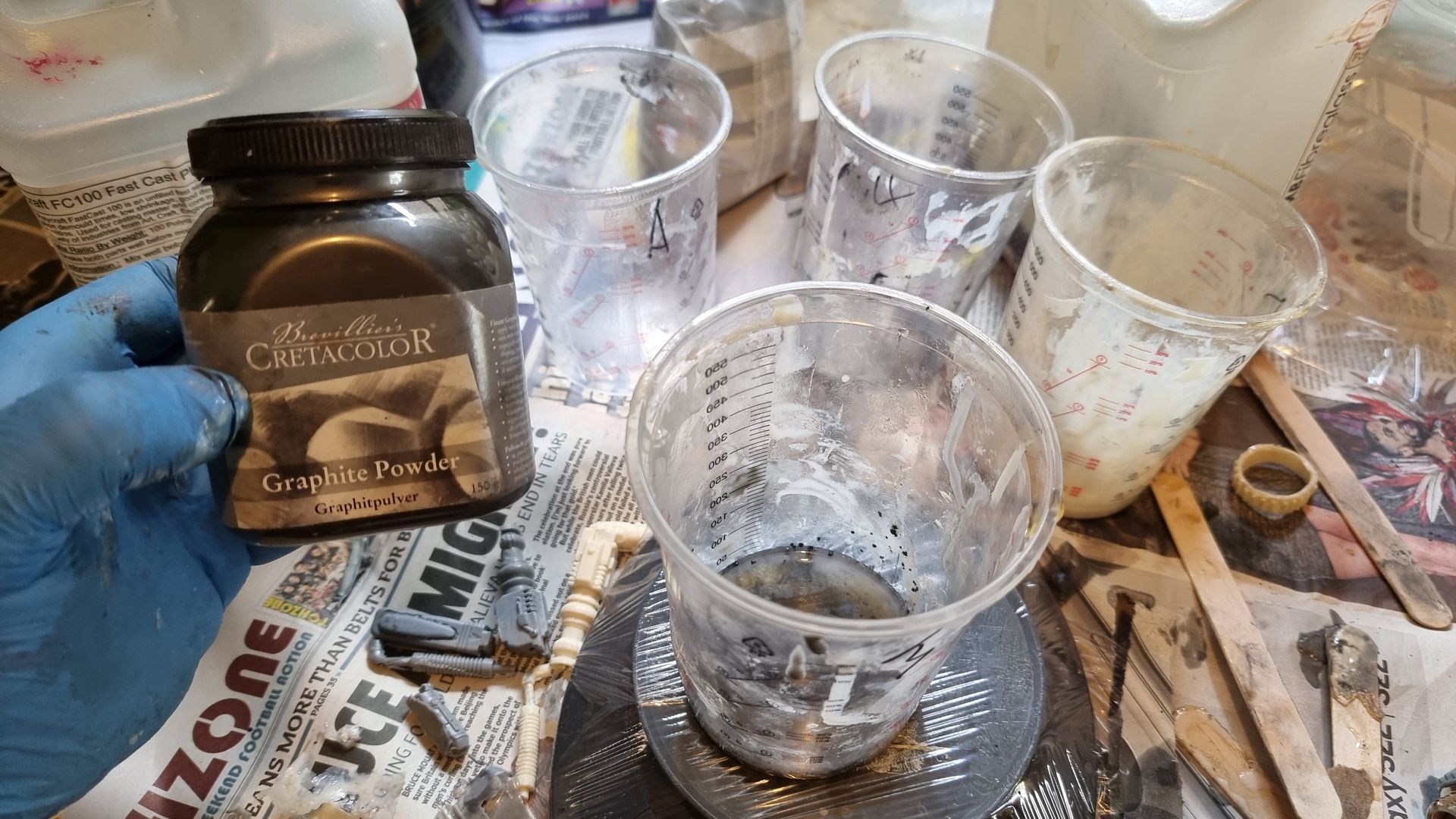 Later while casting I started to add graphite powder to the brushing into mould and the resign mix.