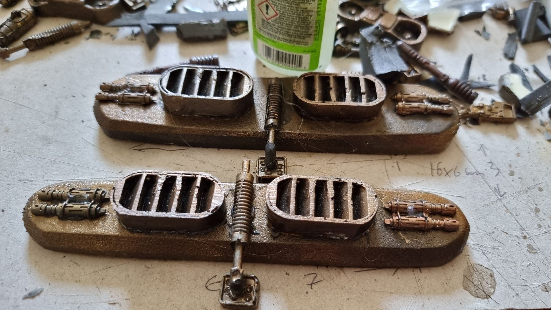 This was them lightly wash sprayed over with watered down rust, khaki, black spray, plus some graphite power to dirty and patch the surface.