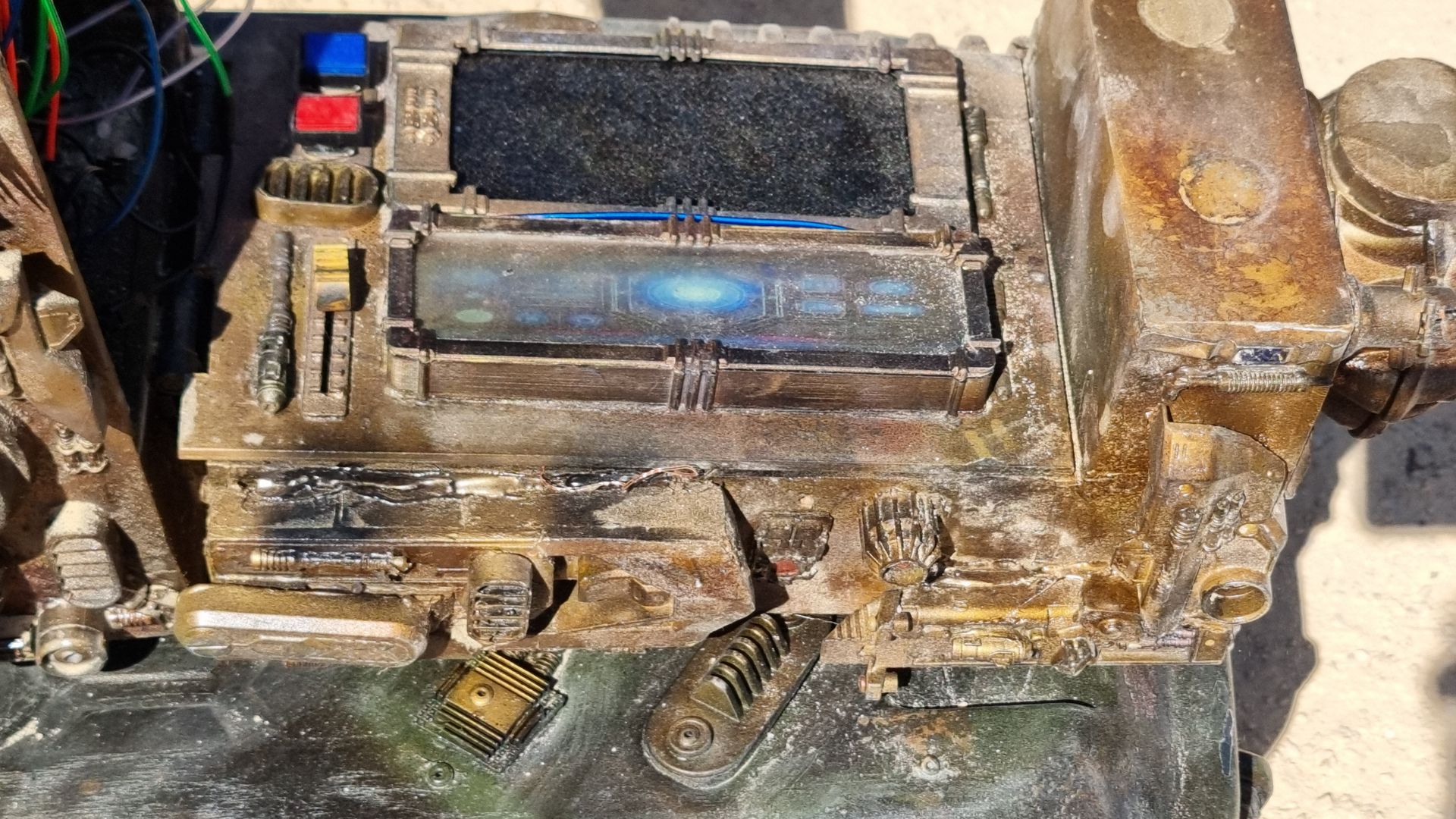 Whilst I did start with the aestehtic of a new looking , industrial produced, clean grey Imperial prop, this soon moved to firstly a ice planet Hoth look to enable dirtying and distressing then # to something one would expect from outer rim rebels, that had been more jury rigged, locally made on a desert planet, and rough to allow for more texture painting and to cover up errors.