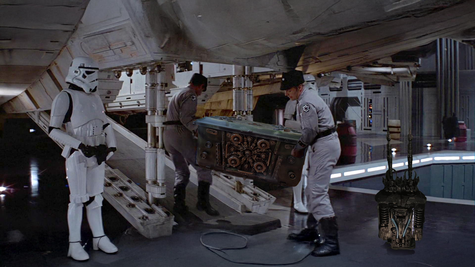 - A stealth rebel imperial ambush limpet mine attack droid using flash cotton or other pyrotechnics.