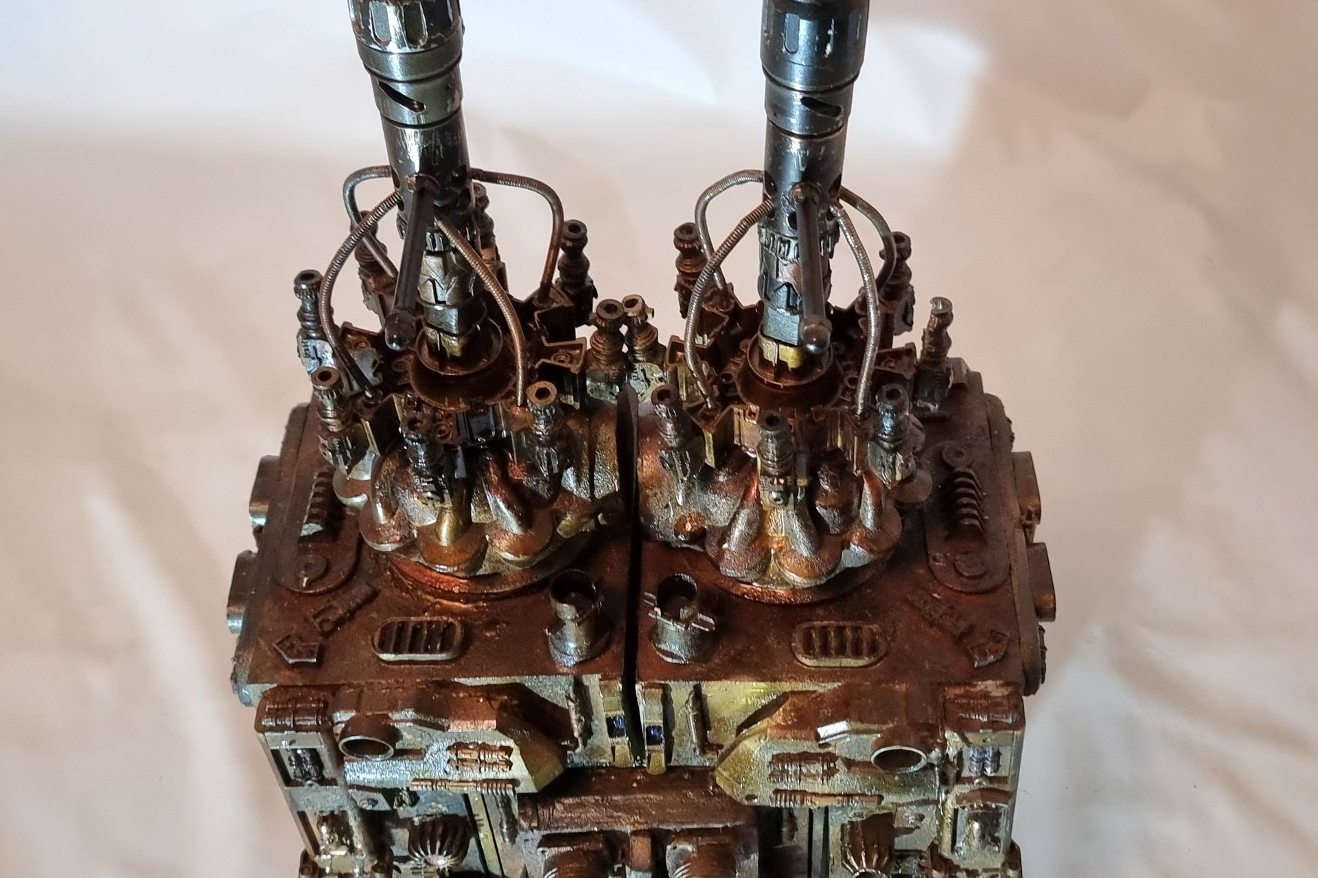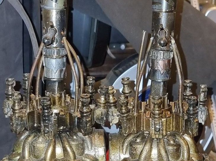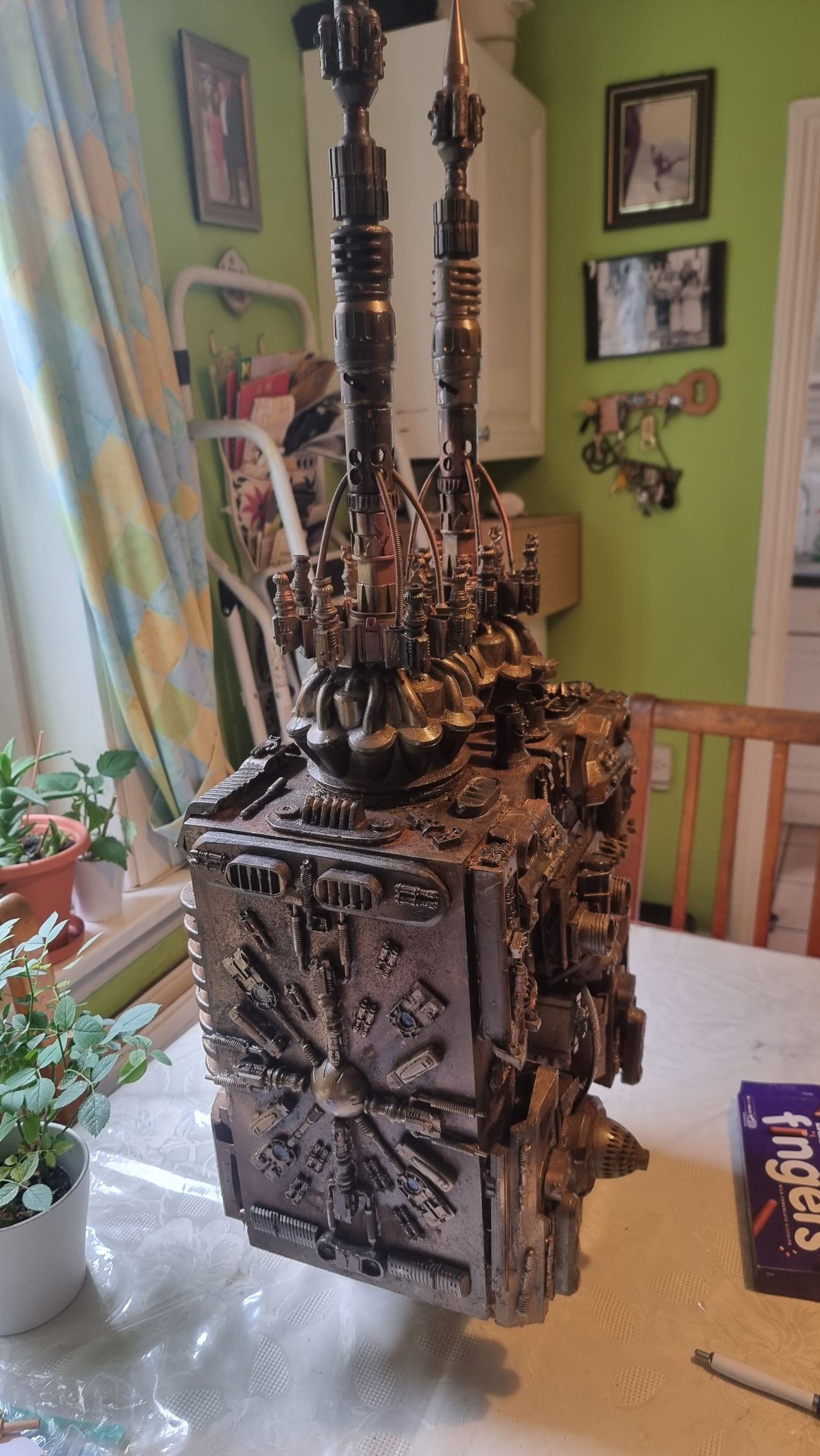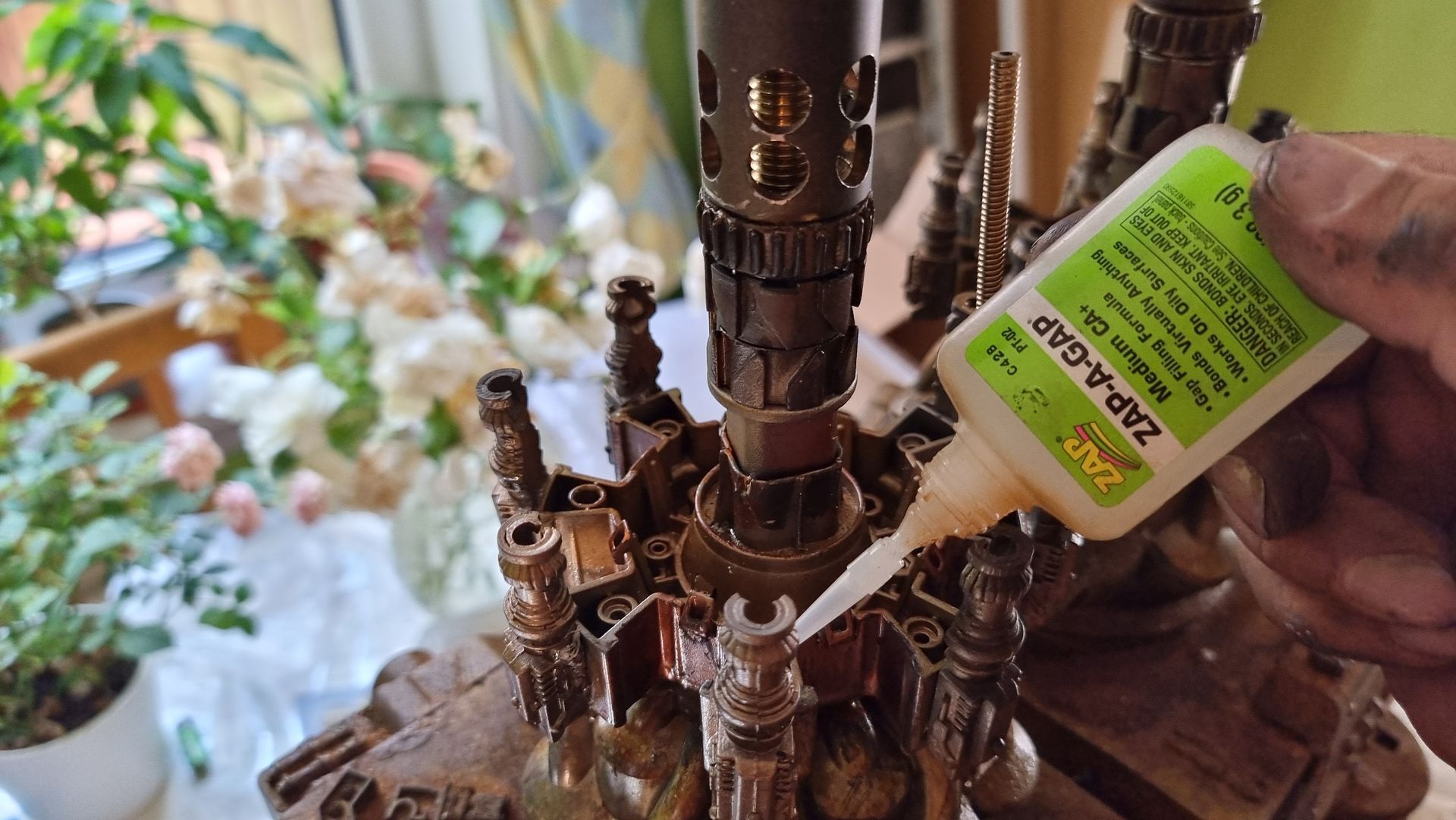 The other end just clipped securely into the doles on the tower component I think originated from a blow torch majorly enhancing he look.