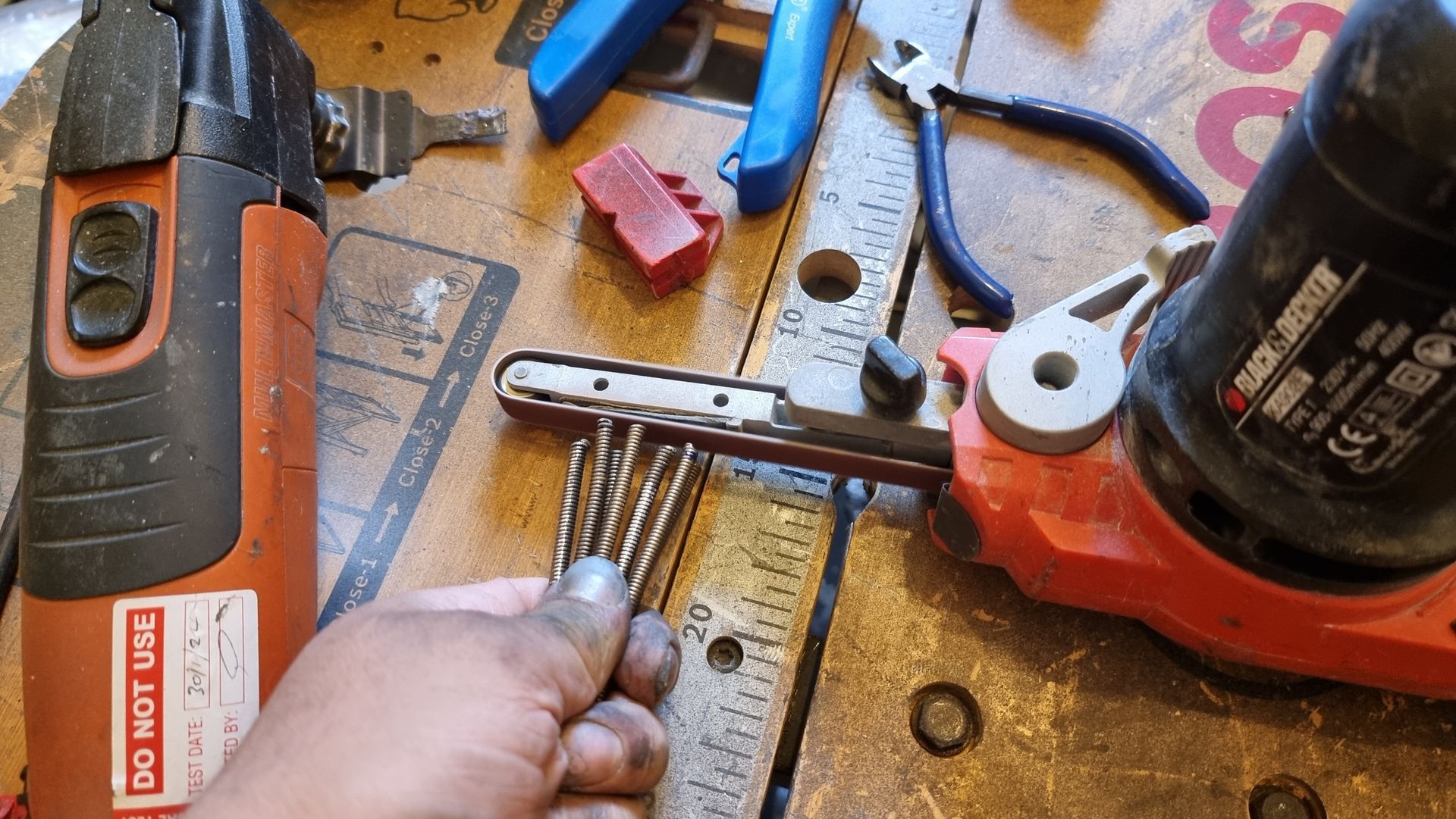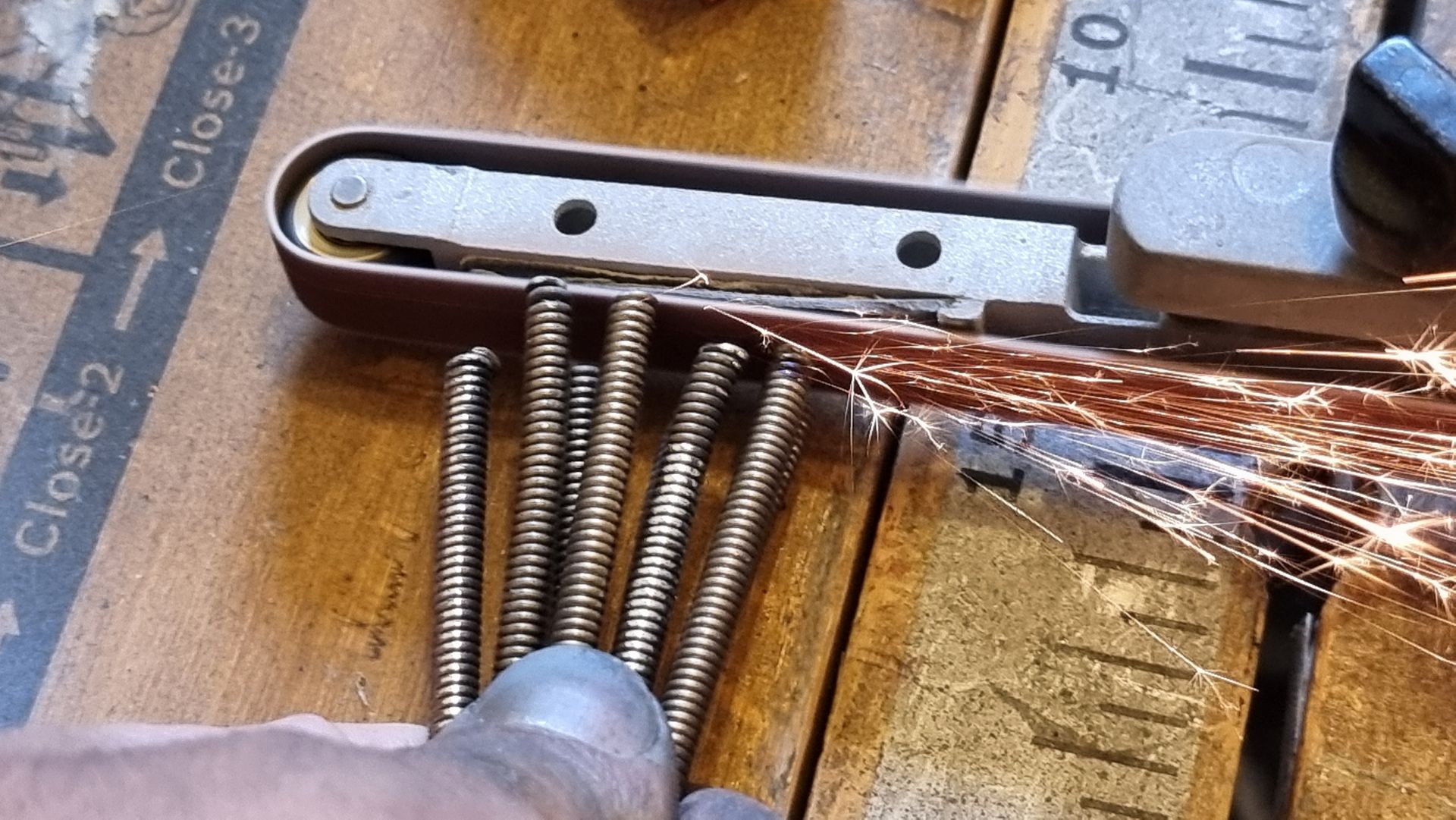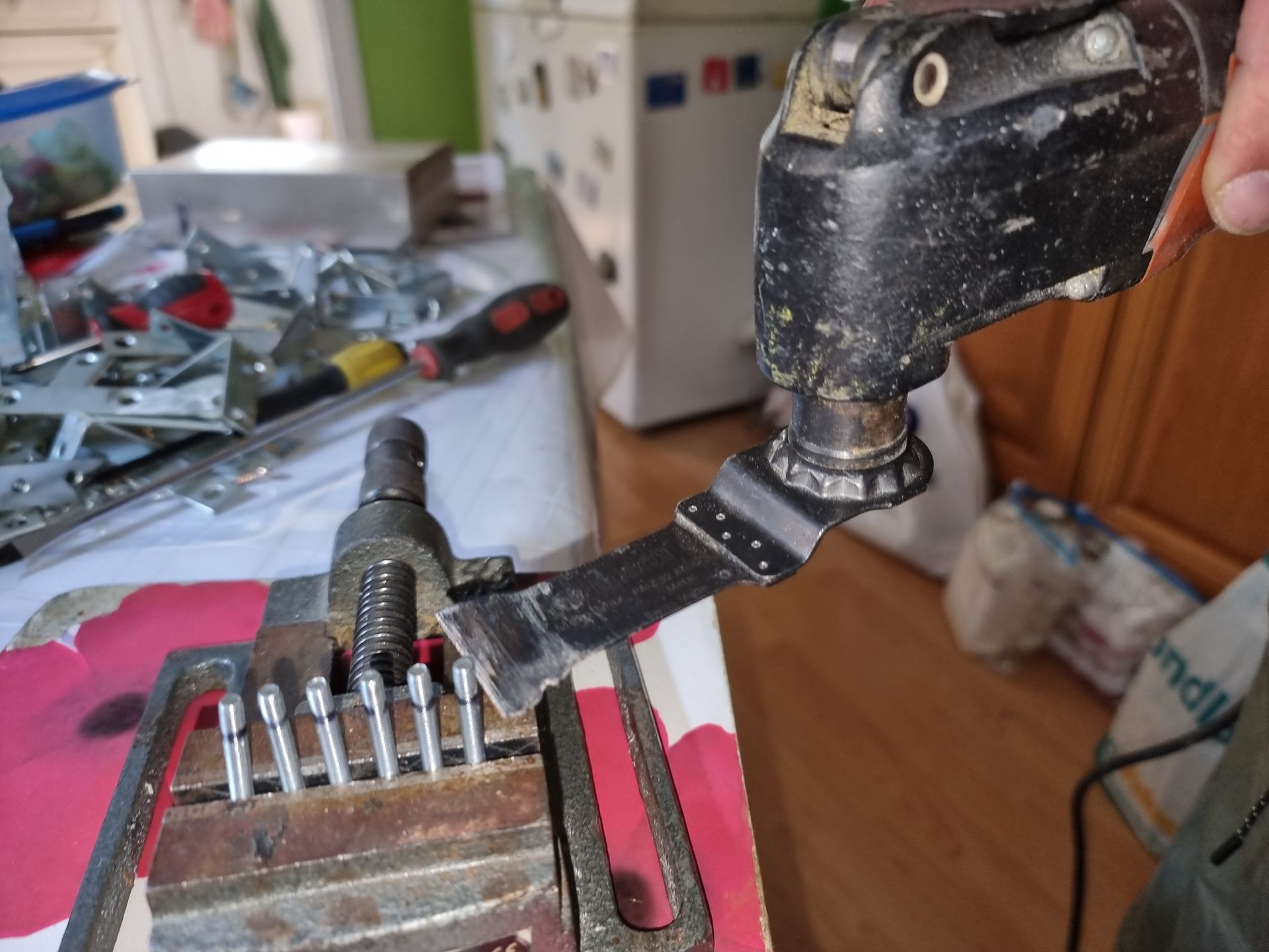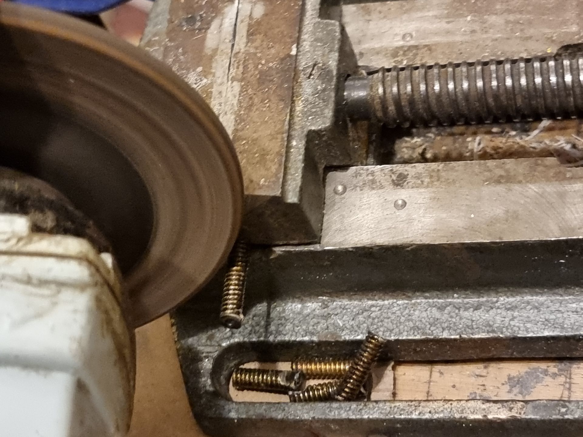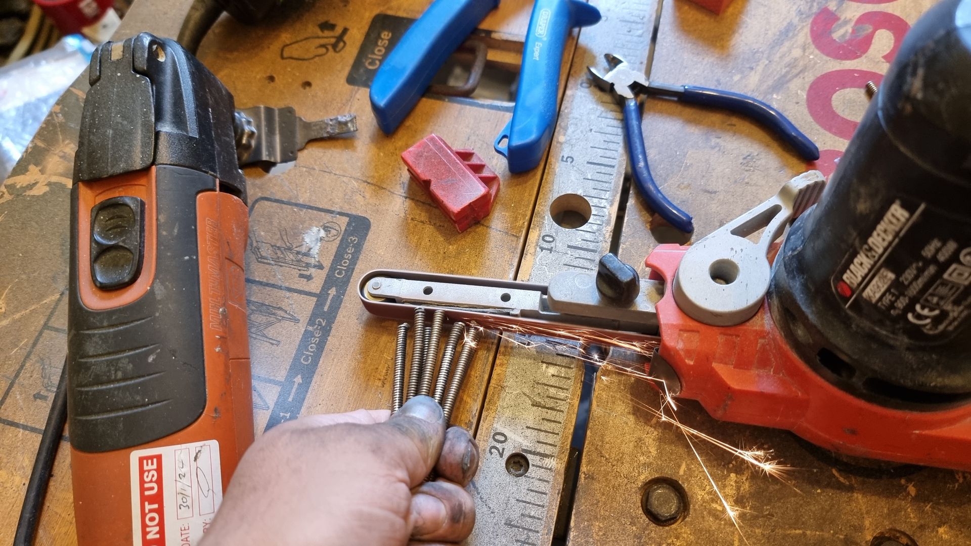 At first cutting and adding these spring cables made from drain clearing tools looked like it would be easy but turned out these were a total pain as due to their springing, flexible tendency to vibrate nature they were all but impossible to cut.