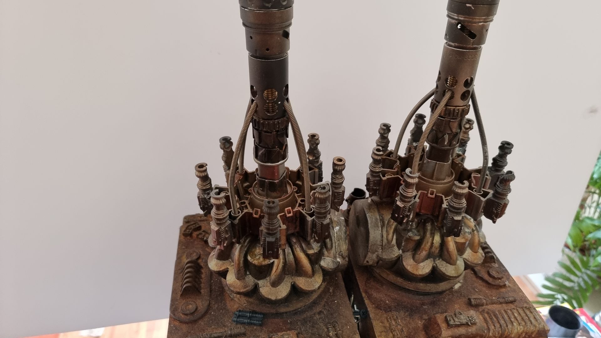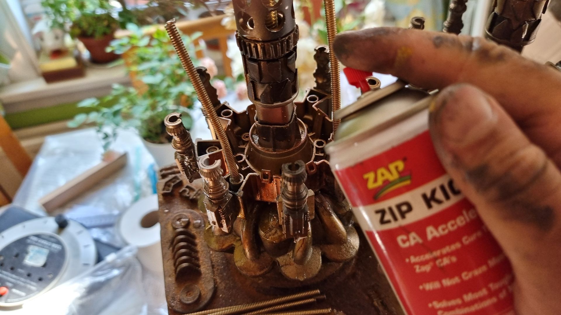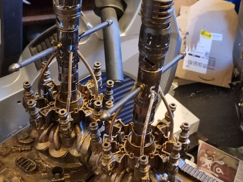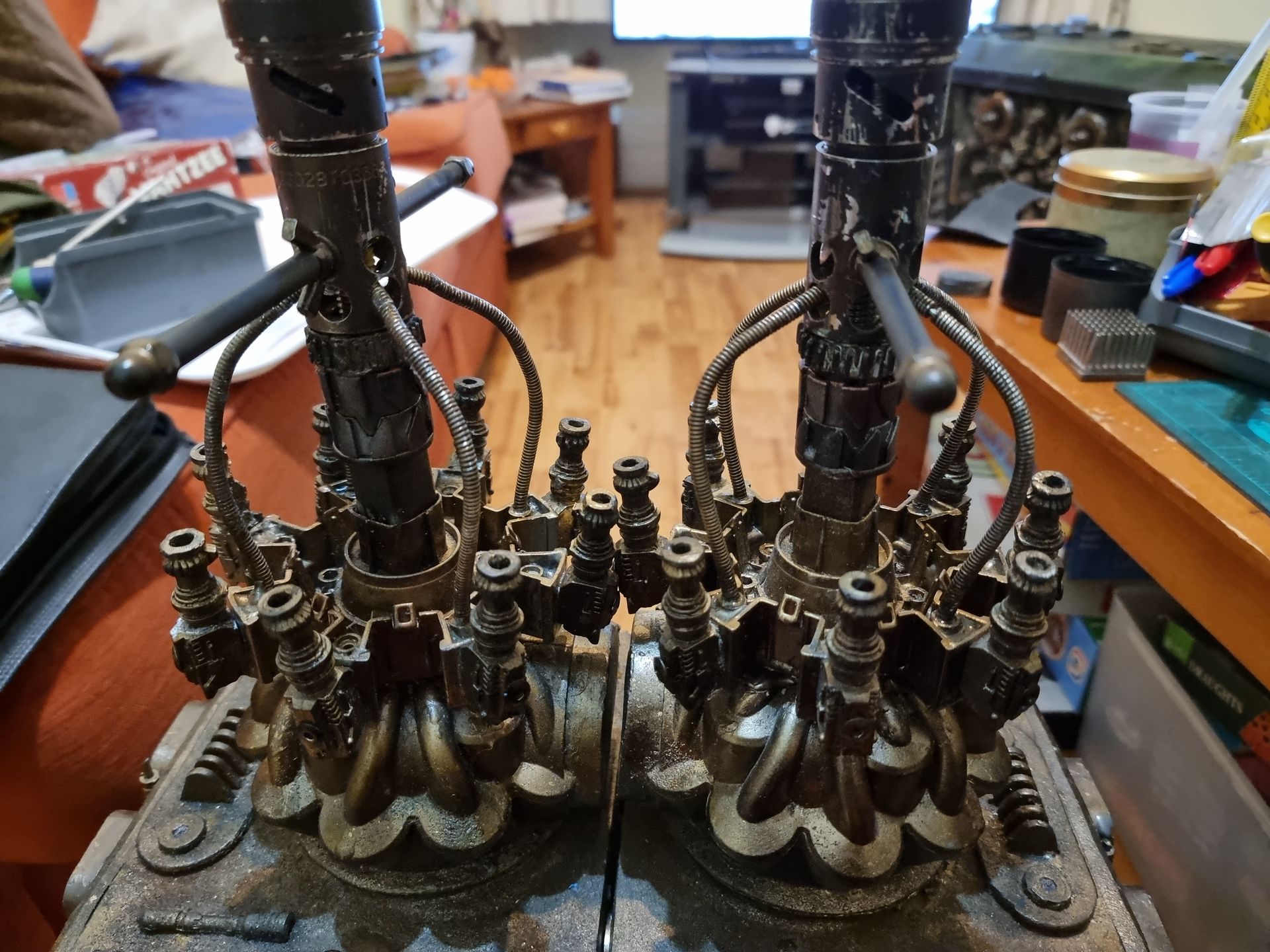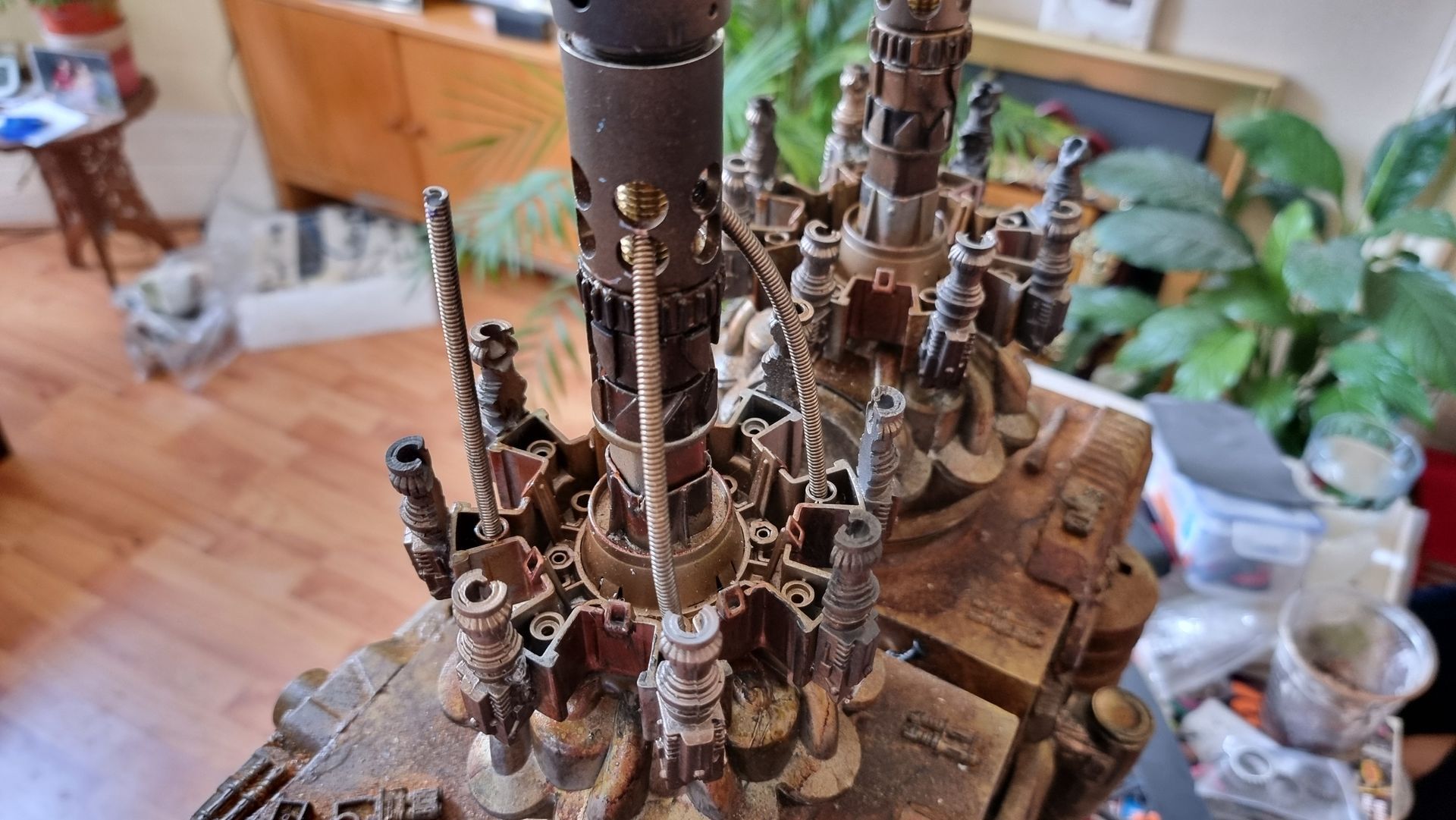 I wanted to add kit bashing that looked technical like pipes or hoses and found support cables that were made from drain cleaning springs could work well.