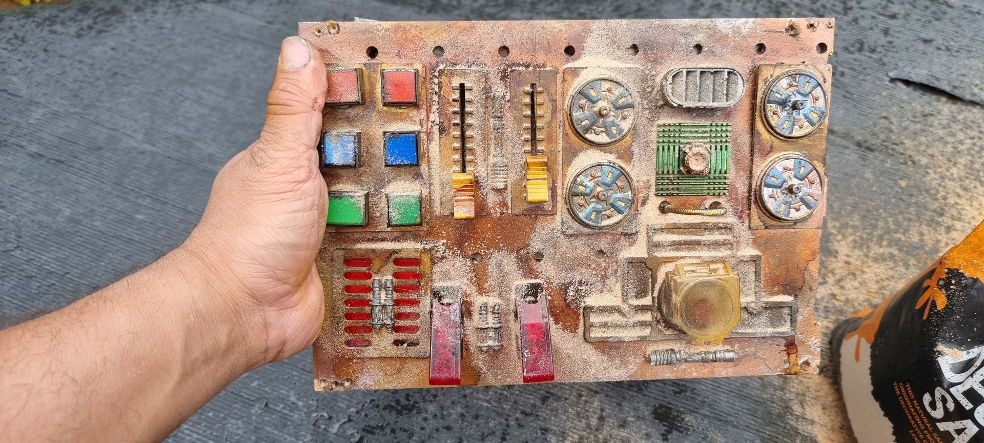 For the control panels, patches of sandy rust were made using superglue, then sprayed over with Dirty Down Rust spray.