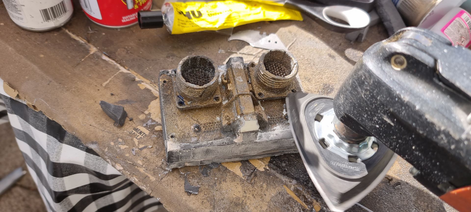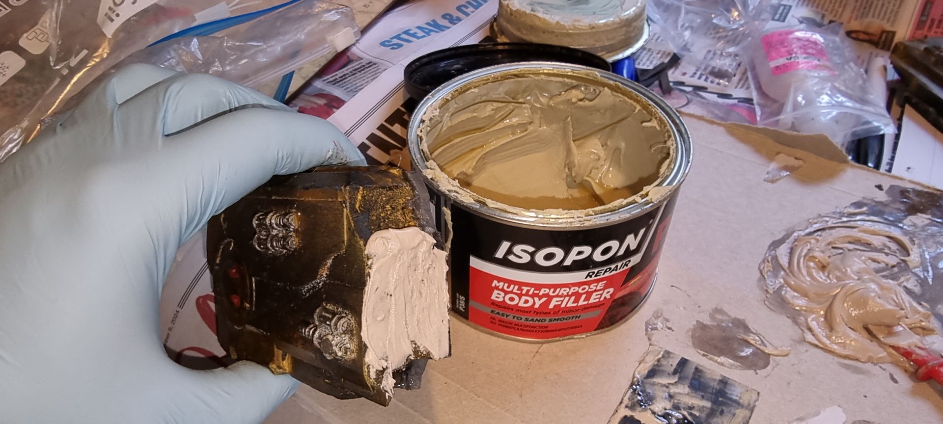 All this alteration and rebuilding meant the inside had to be covered in covered in filler and sanded repeatedly to smooth it out using the Finn Multimaster multi tool to allow for a metallic painted finish.