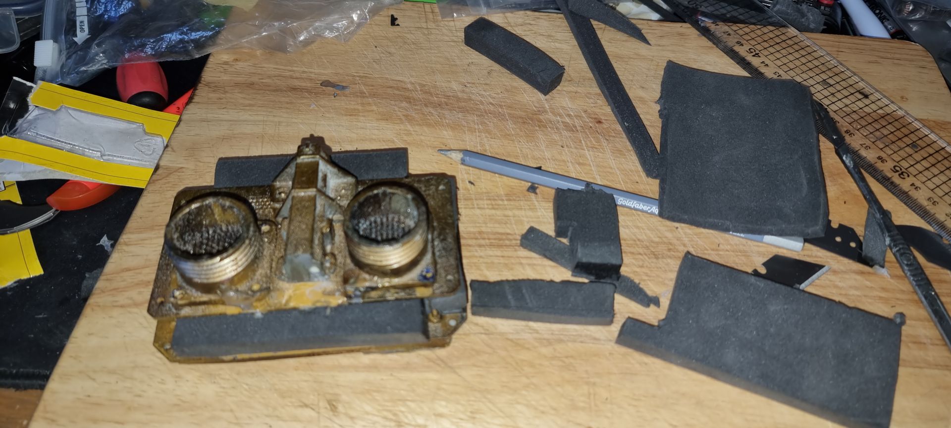 Outer brackets that had been placed in slots had filler covered to hide them. The kit bash parts also hid the brackets.