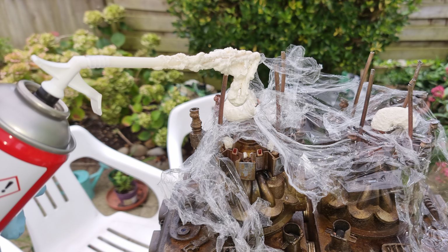 i thought fill with some sort of expanding materials to fill the gaps. - I tried to do this with expanding insulation foam from a can.