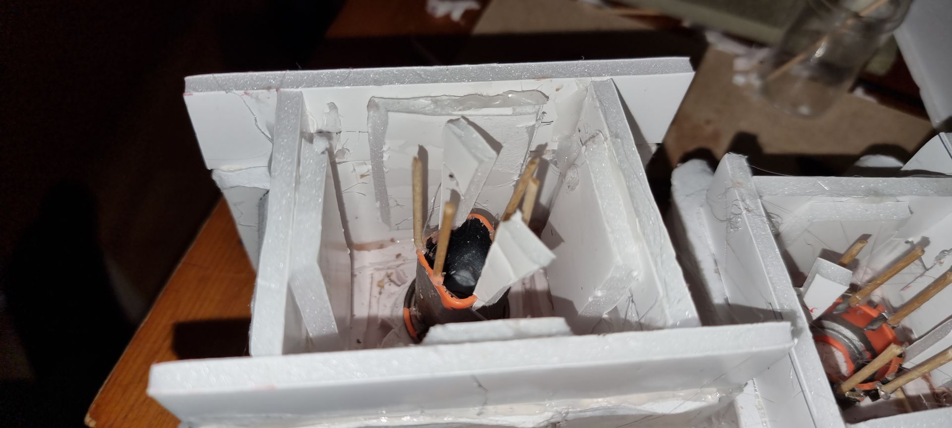 - Whilst the foam was not very had when set it would be firem enough to stop the shafts wobbling all over the place and make for a firmer base.