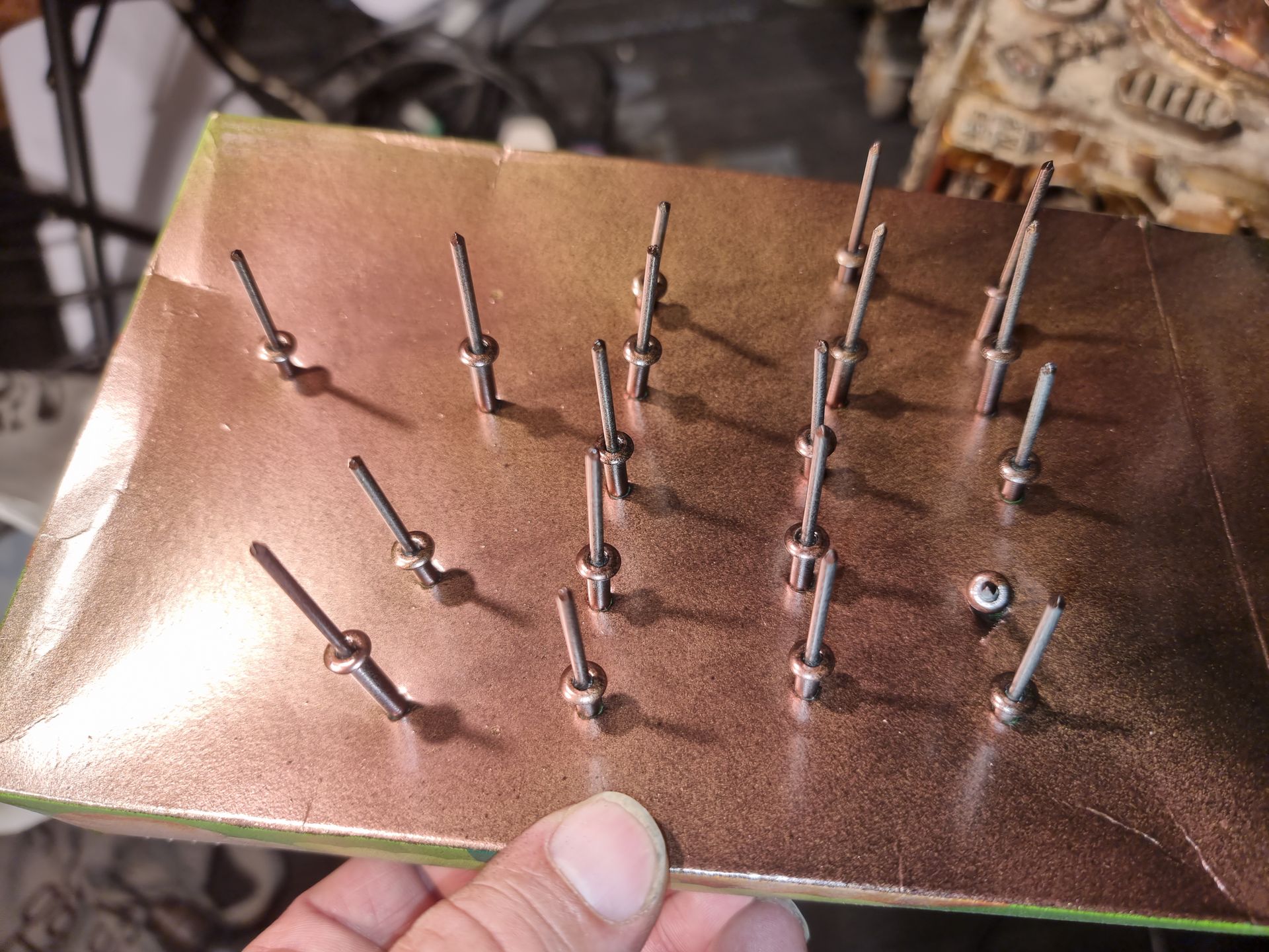 I found I needed at least 40mm rivets to get through the layers and at an angle.