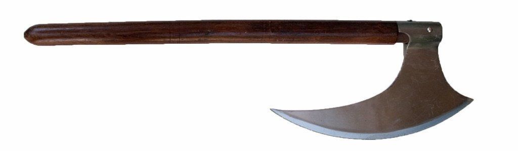 The idea being a confusing alternative weapon that could employ a sneaky trick of trapping your opponents weapon if they were not paying attention then use this to pull them down or disarm them. It would also work with less swinging and more small angle and thrusting movements more like fencing.