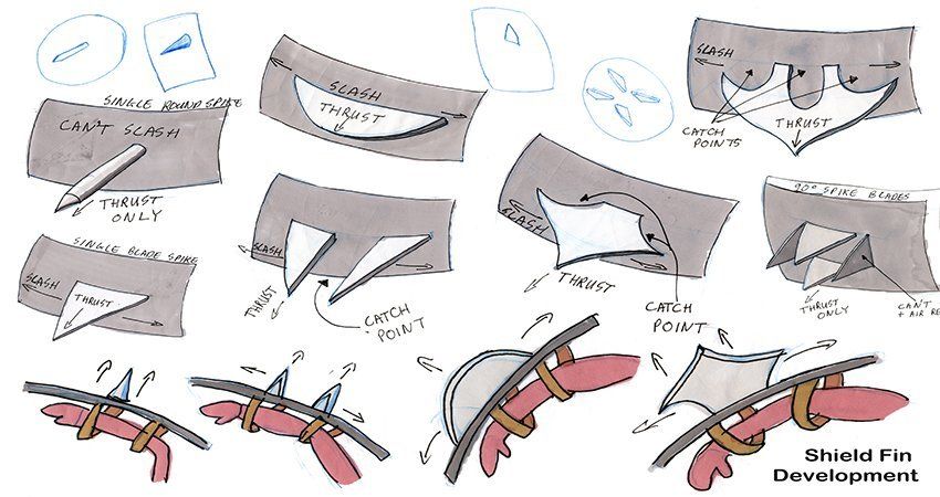- As you can see from the sketching the shield was moved to a horizontal orientation in line with the forearm.