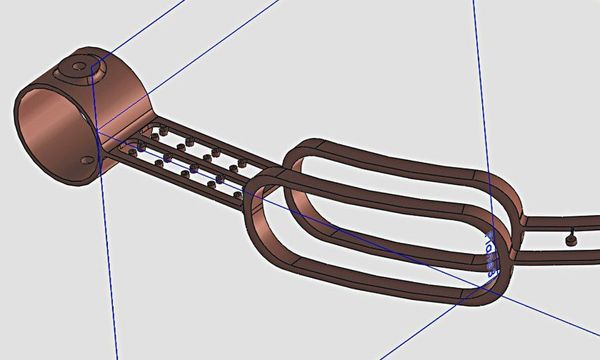 A simple component that could be attached to the (D) pads. Designed so different ring combinations could be added. Slots and tabs were added to the leads to prevent rotation and lock assembly mates.
