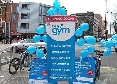 Took over an hour to go and get the materials carry them over, then make the displays and backpack. During this time were not handing out the leaflets. However the investment of time and effort resulted in a far more effective day campaign with far more people talking to us and walking down to check out the gym. The client turned up and was very impressed. Just some string and balloons but shows how I think wanting to get creative with what is available and like making thinks look nice.