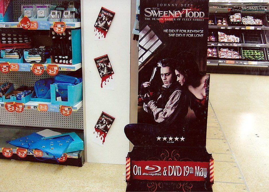 These displays have no budget, no hourly paid time, little in the way of resources other than some string, sticky tape and Bluetac plus any POS (Point of sale material) available. The DVD release day jobs are paid per visit, little over the minimum wage so very little time to spend in stores, often in stores I had not visited before so could not pre plan. Thus an amazingly creative Hollywood set piece is out of the question. More resourceful creativity to draw attention to the video being released as quick as possible so can leave.