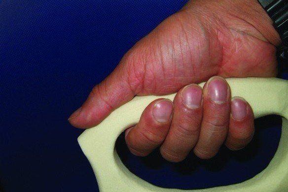 - When glued together the 3 layer blank was carved to shape with a Powerfile, taking into account the thumb dents and concave side for palms as well as the finger guard slot.