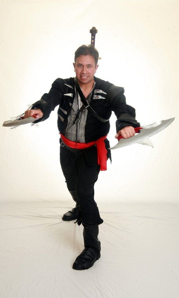 When held backwards much like the forearms of a praying mantis, the knives as a pair could be drawn from a back pair of sheathes in such a manner several surround people could be lethally sliced open as the knives are drawn.