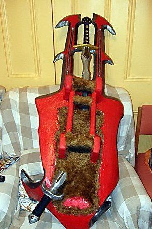 Secondly the side of the shield surface area also gives lots of space for under shield add-ons. Accessories to be purchased separately, included as revenue raiser or deluxe packages and add to the overall show off bling of this premium product. As well as some sort of shooting system , additional weapons, lighting, potion holders, snack bar holders could all be added, maybe a pocket for a music player.