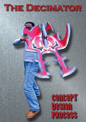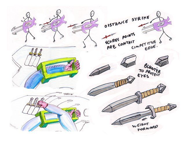 To add value a light weight single handed sword was added that could be sheathed into the sword under the arm. This would give the advantage of surprise, suddenly turning one confusing exotic weapon into two. Given the Decimator’s primary purpose is to grab and trap opponent’s weapons and opponents themselves, once trapped it helps to have something to hit them with ergo the secondary weapon sword. Alternative weapons could be sheathed but the swords would be easiest to draw.