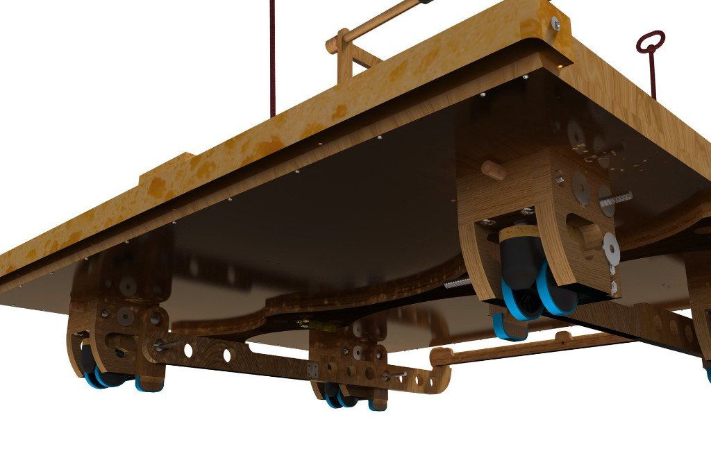 - Have a suspension system on each wheel as well as some form of tires which would also help to silence and smooth the hard castor wheels.