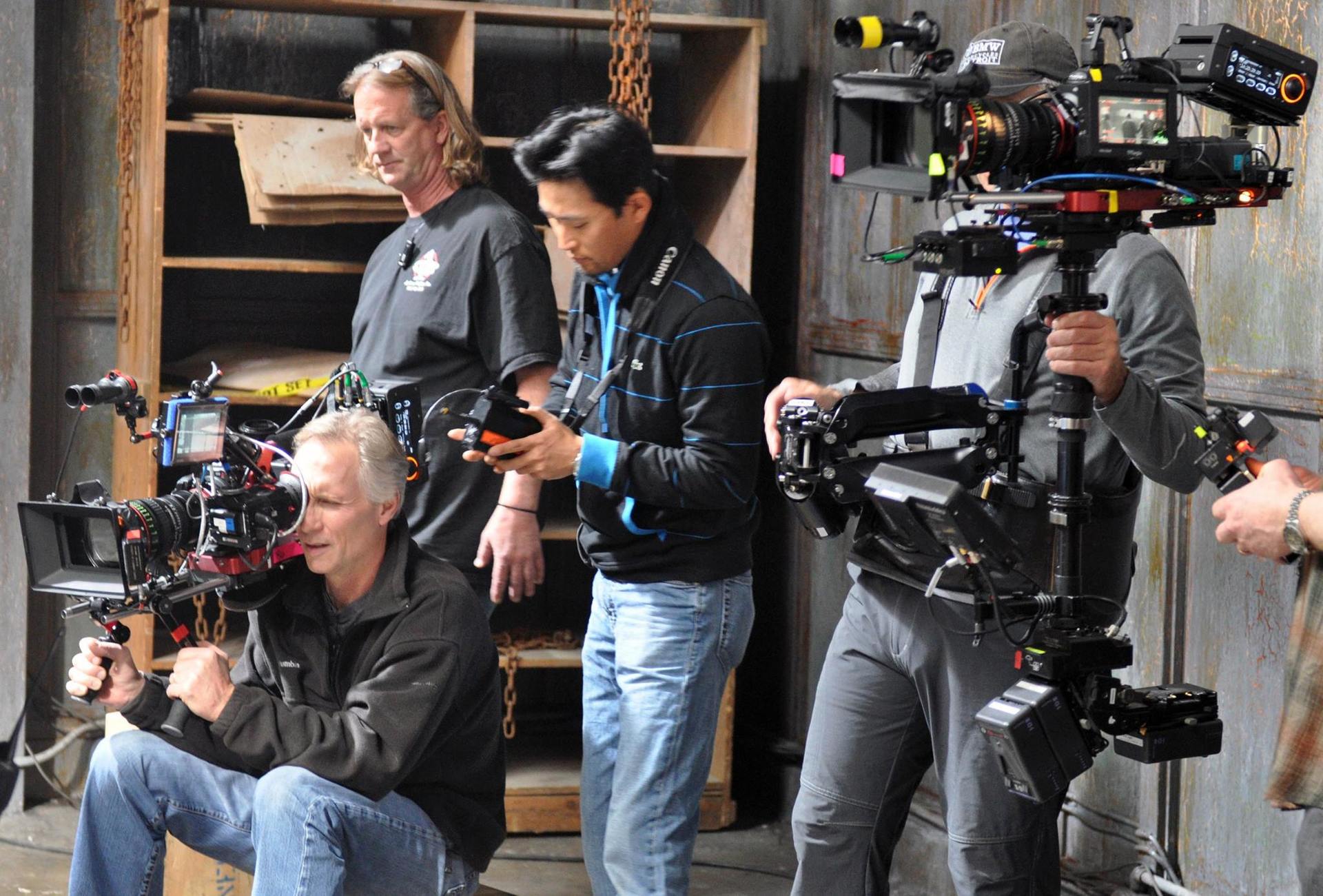 This task is often done with very heavy expensive wheeled dollies running on tracks with a team of grips. It is also done using very heavy and expensive steady cams. This project was to try and come up with something similar on the cheap with scrap wood and bolts behind our shed using some similar principles rather than rent this gear.