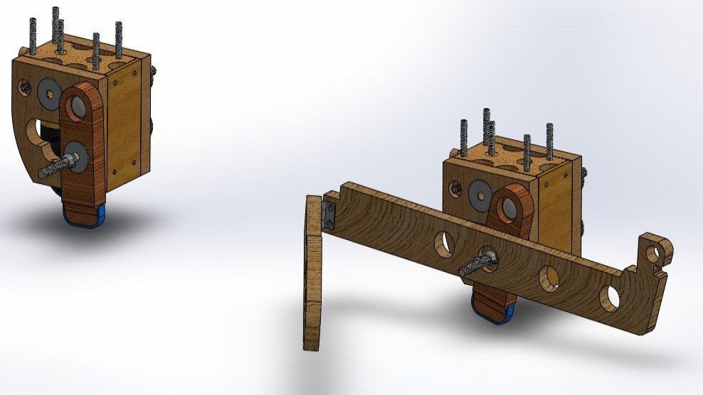Whilst parts could be designed precisely, limited tools & materials I had were too crude to produce this to the tolerances needed & in particular the drilling of large holes just ripped the plywood. It does show CAD work though.