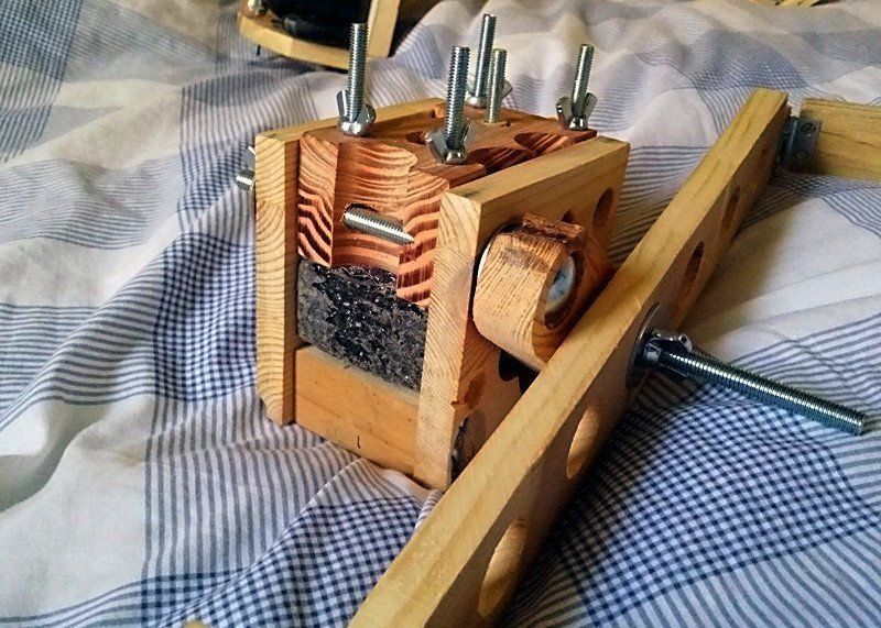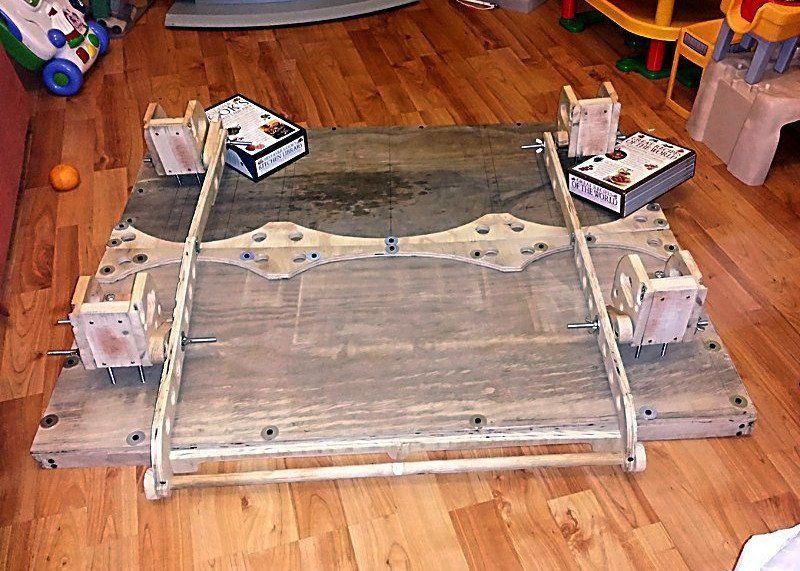 This meant actions like pulling plywood from skips, using wood already available, caster wheels from old furniture etc. it also means trying to make the components using home tools which included a slow crude pillar drill, flat wide drill bits, a disc belt sander, Powerfile, jigsaw and a spindle sander.