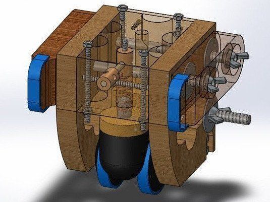 Whilst parts could be designed precisely, limited tools & materials I had were too crude to produce this to the tolerances needed & in particular the drilling of large holes just ripped the plywood. It does show CAD work though.
