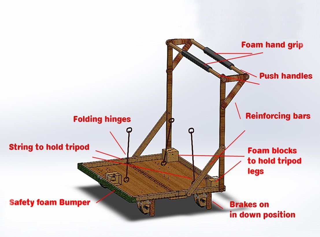 This was a project to try and create a filming dolly, basically a trolley to support a filming tripod with a suspension system to absorb shocks from uneven ground to allow for smooth filming in straight or curved lines.