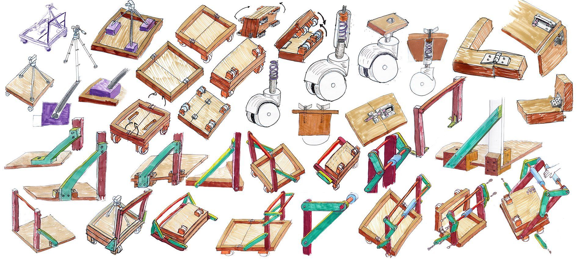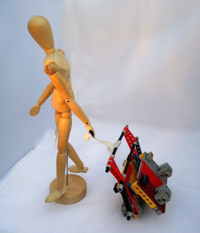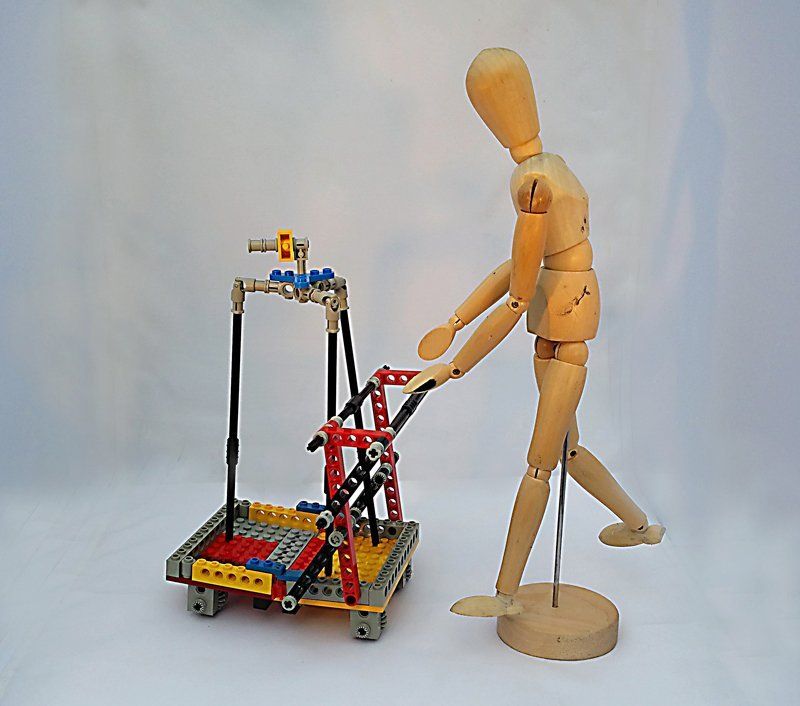One of the product design specifications was the dolly/trolley needs to be able to be folded down to be taken on public transport or a small car to be taken to a location. Experiments to work out the mechanics of this were done using Lego Technic.