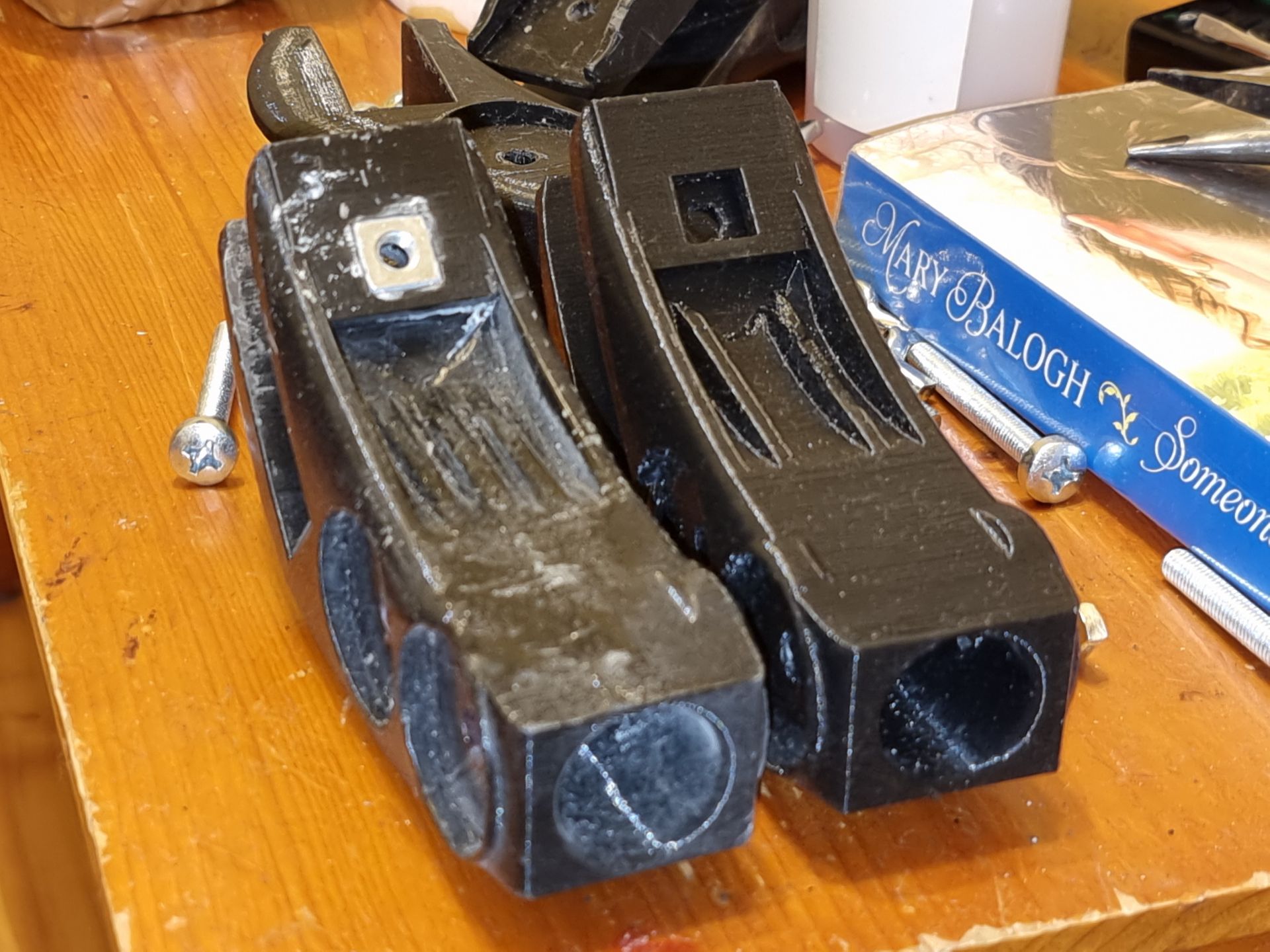 At first the bolt holes had a screw thread tap designed into the STL files in photoshop. Then with a tapping wrench before What was found was that this took too long for the bolts to be screwed in, too tights and also being a soft PLA plastic very soon wore out within a few insertions.