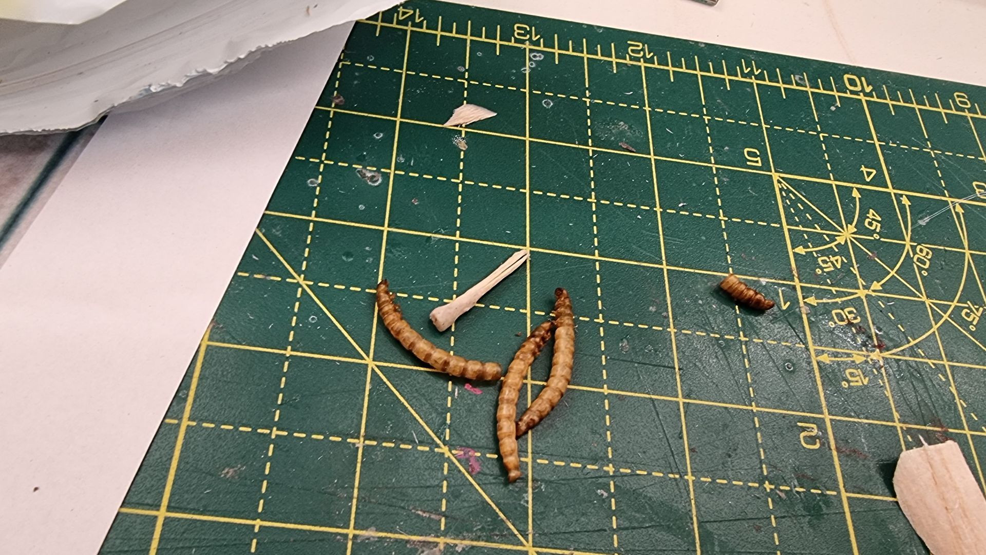For this I just purchased a small bag of dried meal worms from a pet shop.