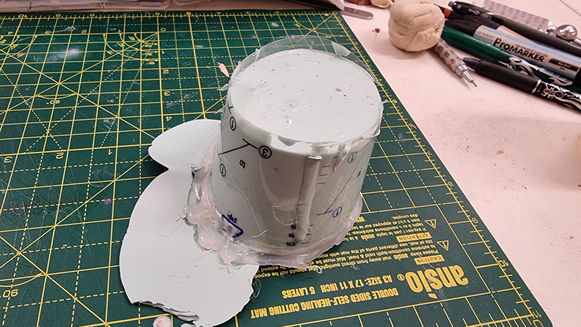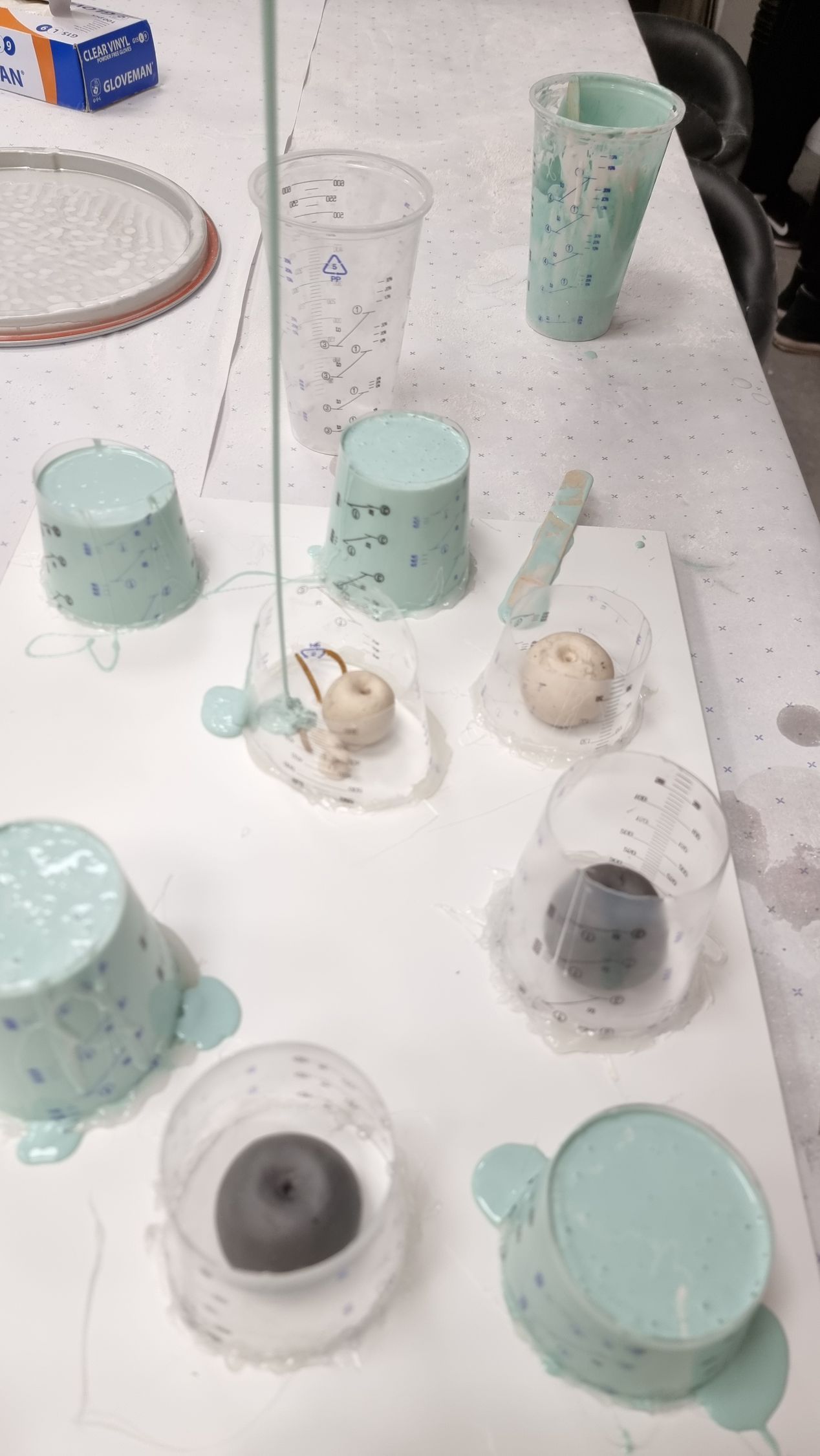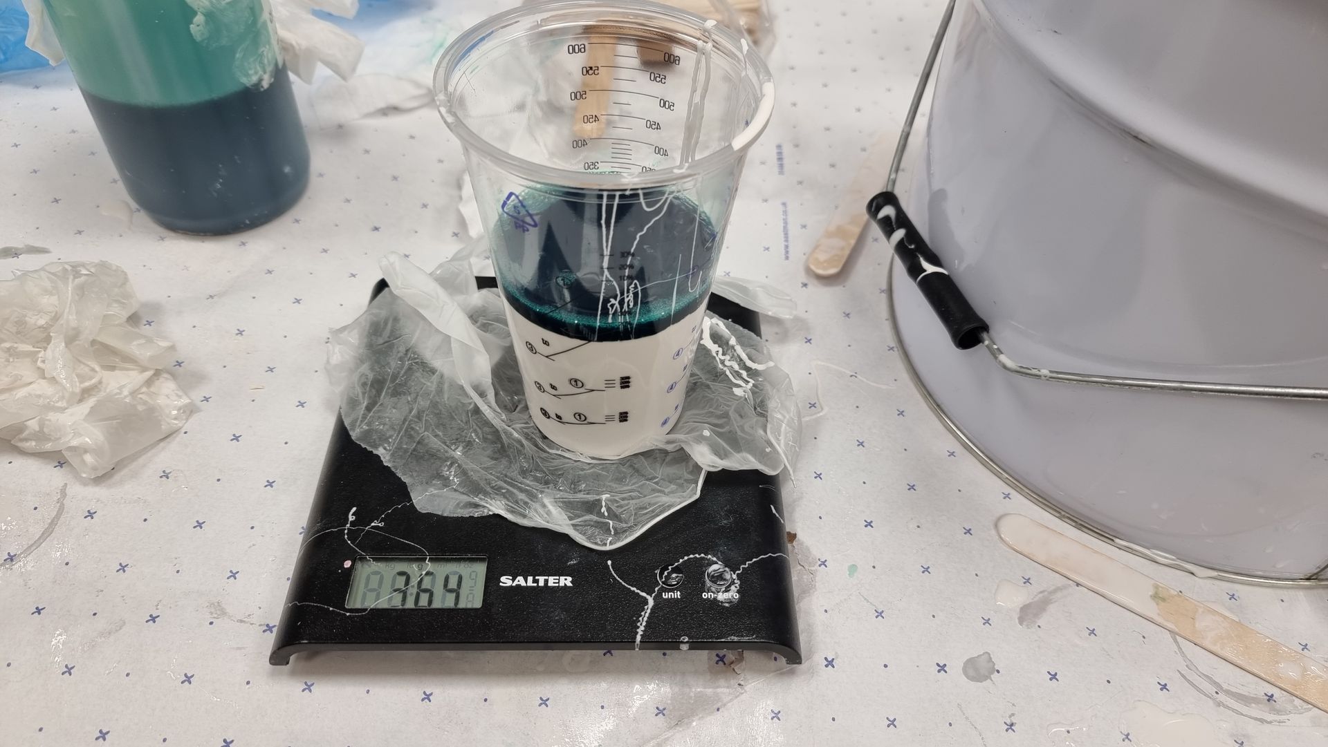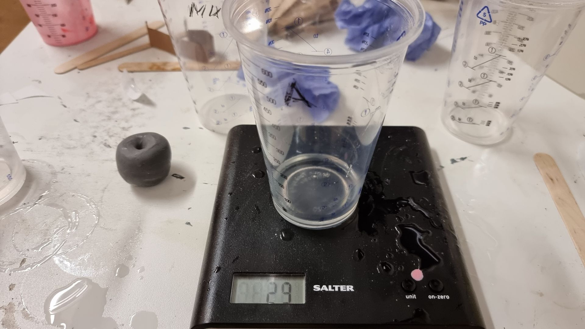 With the mould set up, the silicon and catalyst needed was calculated and mixed at 10 silicon to 1 catalyst by weight.
