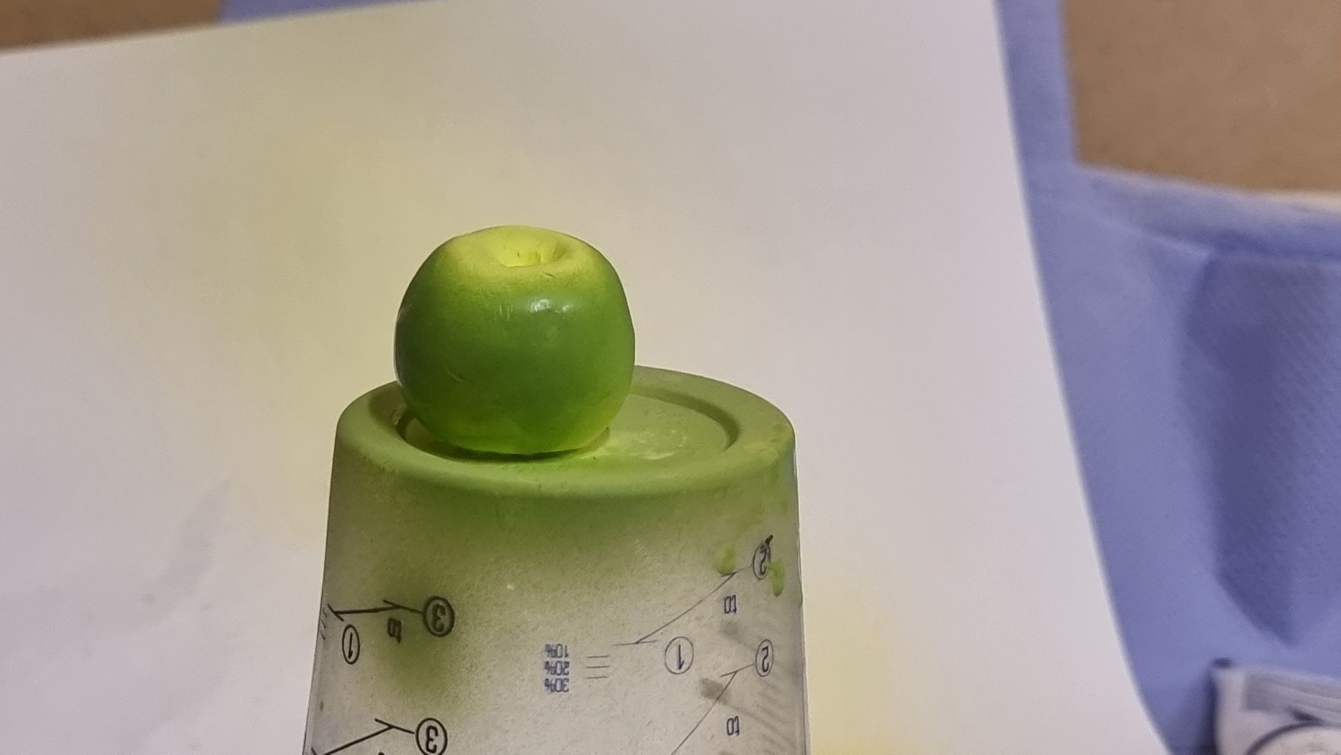 A ring was added to the underside to support the , and bond the apple sculpt to the mould that could be sanded off after casting.